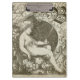 Ángel vintage con rayos de sol. Mirada victoriana. Imagen gris.