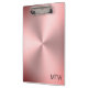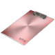 El aspecto metalizado rosado es una obra de arte. El portapapeles tiene un diseño radial. El texto negro está en la esquina inferior. Puede cambiar el texto para mostrar el monograma correcto.