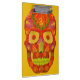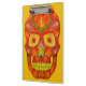 El cráneo inspirado en My Day of the Dead celebra la vida y la muerte con un collage de mis pinturas de hojas de álamos, con los rojos y amarillos de la caída.
