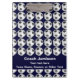 ¡Este portapapeles es un regalo único y divertido para el entrenador del equipo de fútbol! El patrón de baloncesto de fútbol con un fondo azul oscuro y nombre blanco y gracias a texto es muy brillante y llamativo. ¡A tu entrenador de fútbol le encantará! El texto de ejemplo tiene cabida para 3 líneas, que se pueden modificar o eliminar fácilmente. Todos los derechos reservados © 2014 Alan & Marcia Socolik.