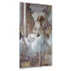 Bailarines Edgar Degas. Retrato bonito en tonos marrón blanco pastel. Ballerinas con faldas blancas van a clase. Los chicas enderezan sus vestidos. Reproducción de obras famosas de imágenes artísticas de dominio público.
