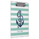 El diseño presenta una cuerda y un ilustracion de ancla en azul marino clásico sobre un fondo de rayas verdes y blancas de menta. Personaliza con un nombre o texto de tu elección. Accesorios de coordenadas disponibles en nuestra tienda.