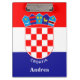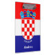 Este portapapeles personalizado muestra la bandera de Croacia con el escudo de armas, y el nombre del personalizable del país y el texto adicional (nombre) con letra blanca, colocado en la parte inferior.