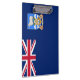 Este diseño presenta la bandera de las Islas Malvinas (Falkland Islands), archipiélago situado en la plataforma patagónica del océano Atlántico Sur. Las principales islas están a unos 300 millas al este de la costa patagónica meridional de América del Sur y a unos 120 km del extremo norte de la península antártica. El archipiélago tiene una superficie de unas 4.700 millas cuadradas. Comprende las Islas Falkland del Este, las Islas Falkland del Oeste y 776 islas más pequeñas. Las Islas Falkland son un territorio británico de ultramar. La capital de las Islas Falkland es Stanley (también conocida como Port Stanley), que se encuentra en las Islas Falkland.