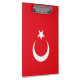 Este diseño presenta la bandera nacional de Turquía (Türkiye), oficialmente la República de Turquía (Türkiye Cumhuriyeti), un país transcontinental situado principalmente en la península de Anatolia en Asia Occidental, con una porción menor en la península de los Balcanes en el sureste de Europa. Tracia Oriental, la parte de Turquía en Europa, está separada de Anatolia por el Mar de Mármara, el Bósforo y las Dardanelles (llamados colectivamente Estrechos Turcos). Estambul (históricamente conocida como Constantinopla y Bizancio), que se extiende a lo largo de Europa y Asia, es la ciudad más grande del país, mientras que Ankara es la capital.