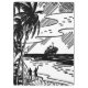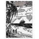 Una imagen retro en blanco y negro de un barco de crucero y dos personas saludando desde la costa. Imagen de un libro de impresoras antiguas de los años 40 (sin derechos de autor).