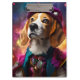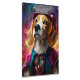 Un Beagle juguetón vestido con un disfraz vibrante y caprichoso contra un telón de fondo brillante y mágico. Este encantador diseño es perfecto para los amantes de los animales.
