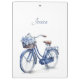 pintura acuarela de una bicicleta con una cesta llena de flores en los colores de Delft Blue