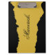Striking and sophisticated, this black and metallic gold clipboard adds a modern edge to everyday organization. The bold color contrast creates a polished look, while the displayed name brings a custom, professional touch. Perfect for offices, classrooms, events, or creative spaces where functionality pairs naturally with standout style.