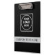 Showcase your brand with this black and silver professional business clipboard. Customize it with your company logo, name, or text template for a sleek and modern promotional tool. Perfect for corporate teams, small businesses, real estate agents, and trade show events. This minimalist clipboard combines style and professionalism to enhance your brand identity.