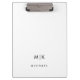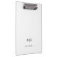 Este diseño moderno del portapapeles presenta un fondo blanco sencillo, con sus iniciales en negrita en texto negro para un aspecto sencillo y profesional.