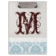 Carpeta De Pinza Blue Filigree Damask Monogram Tarjeta Clip Inicial