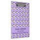 ¡Este portapapeles es un regalo único y divertido para el entrenador del equipo de fútbol! En el frente - Un patrón de pelota de fútbol púrpura y blanco con un fondo púrpura pálido y letras púrpura oscuras - muy brillante y llamativo. En la parte trasera - el patrón de la pelota de fútbol. ¡A tu entrenador de fútbol le encantará! El texto de ejemplo en la parte delantera tiene espacio para 3 líneas (nombre, temporada, gracias), que se pueden modificar o borrar fácilmente. Todos los derechos reservados © 2014 Alan & Marcia Socolik.