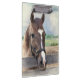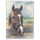 Un caballo del marrón de la castaña con una raya blanca en su cara es situación vista en el prado. La imagen tiene una calidad suave y soñadora a ella. Personalizar añadiendo un subtítulo, un nombre, o un monograma.