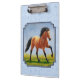 Caballo salvaje de piel de hebilla galopando a través de una planicie de hierba. Acentuado con un fondo azul cielo bonito.