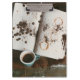 Con una fuerte taza de café oscuro emparejada con un diario vacío cubierto de manchas de café, frijoles y terrenos de café sueltos.