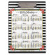 Este calendario mensual de 2024 años de doble cara muestra los días de la semana de cada mes en negro y oro elegante y de aspecto profesional. Es fácil de leer, además de estar de moda y mona. El diseño está decorado con un fondo de rayas negras y blancas, adornado con flores de color rosa, rojo y amarillo. Hay corazones al lado de los cursivos nombres de mes y una delgada frontera de color dorado. Este es un portapapeles de calendario anual de bonitos para ayudarle a conquistar el año nuevo. Saber siempre qué fecha es y comprobar los días de la semana con este calendario elegante. El calendario aparece en ambos lados para un acceso fácil. Utilice las plantillas para personalizar el calendario con su nombre, nombre comercial, sitio web u otra información en la parte superior e inferior (o simplemente elimine el texto de ejemplo para dejar ambos espacios en blanco).