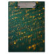 Elegant gold handwriting flows across a deep green surface, like a fragment of a secret manuscript.