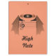 Música de papel negro y gris con una nota completa. La partitura tiene un par de alas de murciélago marrón que dan a entender que toda la nota está en un rango de audio muy alto.