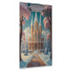 Un majestuoso castillo de fantasía surge de un paisaje prístino y nevado, rodeado por un bosque de encantadores árboles rosas. Las montañas cubiertas de nieve atraviesan el horizonte, sus picos bañados en el resplandor etéreo de un sol abrasador. ¿Sabías que en los tiempos medievales, el rosa era considerado un color de poder y prestigio? Las imponentes torretas y batallas del castillo hablan de una rica historia, mientras que las delicadas flores de los árboles circundantes dan a entender un lado más suave y mágico de la fortaleza.