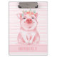 Un adorable cochinillo acuático con una corona floral sobre un fondo de rayas rosas. El texto dice: ¡Hola! (personalizar fácilmente el texto con sólo unos cuantos clics!)