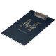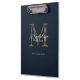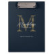 Simple Chic Script Metallic Navy Blue Gold Monogram Clipboard