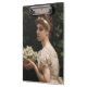 Este diseño presenta una pintura del artista inglés Sir Edward John Poynter (1836-1919), que ejerció como presidente de la Real Academia de Artes. Representa a una hermosa joven que lleva un elegante vestido blanco. Está parada en un jardín con una canasta de flores de guisantes que ha recolectado. Las flores son blancas y brillantes y se corresponden con el vestido del chica. La obra original fue pintada por Edward Poynter en 1890.