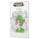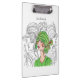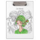 Placa de clip con chica Flapper en gorra verde y nombre personalizado.