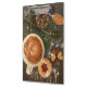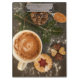 El diseño incluye una fotografía de una bebida Navidad y una decoración.
