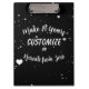 Design a professional and personalized clipboard with your own logo, brand name, motto, or QR code. Perfect for small businesses, corporate teams, real estate agents, and trade show events, this modern and minimalist clipboard helps promote your business while staying functional. A great promotional product to build brand identity and impress clients.