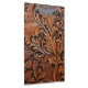 Portapapeles marrón rústico con fondo de cuero falso con herramientas.