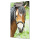 Un diseño de arte fotográfico de un lindo poni marrón.