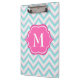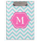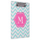 Carpeta De Pinza Diseño blanco rosado azul del monograma de Chevron