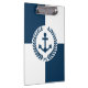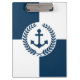 Diseño de temática náutica con decoración de coronas de ancla y laurel sobre fondo geométrico azul y blanco