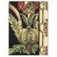 Un cuadro ornamental con un bonito diseño floral rodeado de bordes negros. Los colores verde y rojo saltan a la impresión gracias al fondo negro. ¿Qué tan maravilloso sería este aspecto en tu pared? ¡Compra y averigua!