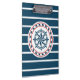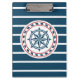 Diseño náutico con decoración de brújula en forma redonda sobre fondo rayado azul y blanco