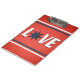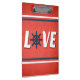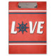 Ama el diseño náutico con rueda de vela y rayas decoración sobre fondo rojo grueso