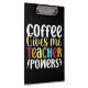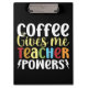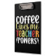 Gracioso diseño de café para profesores que aman y necesitan su café en bolsas para profesores, cuadernos, tazas, almohadas, camisetas, botones y más. El texto dice Café me da poderes docentes!