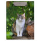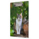 Un gato se sienta en el jardín verde, al lado de un tronco y mira hacia delante - Dos lados diferentes