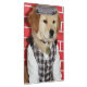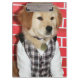 Este tablero ofrece un perrito del golden retriever vestido todo para arriba en un pequeño equipo lindo.