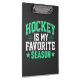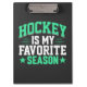 El portapapeles de hockey con texto verde y blanco sobre fondo negro dice ¡El hockey es mi temporada favorita!