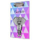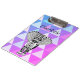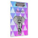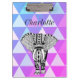 Portapapeles de elefante tribal y geométrico colorido y a la moda con letra monográfica. Los colores morados, rosas y azules descienden alrededor del diseño audaz de los elefantes blancos y negros.