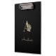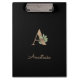 El elegante portapapeles negro presenta un monograma botánico dorado en el centro.