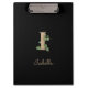 El elegante portapapeles negro presenta un monograma botánico dorado en el centro.