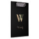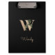 El elegante portapapeles negro presenta un monograma botánico dorado en el centro.