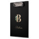 El elegante portapapeles negro presenta un monograma botánico dorado en el centro.