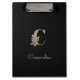 El elegante portapapeles negro presenta un monograma botánico dorado en el centro.