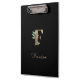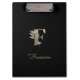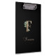 El elegante portapapeles negro presenta un monograma botánico dorado en el centro.