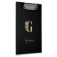 El elegante portapapeles negro presenta un monograma botánico dorado en el centro.
