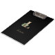El elegante portapapeles negro presenta un monograma botánico dorado en el centro.